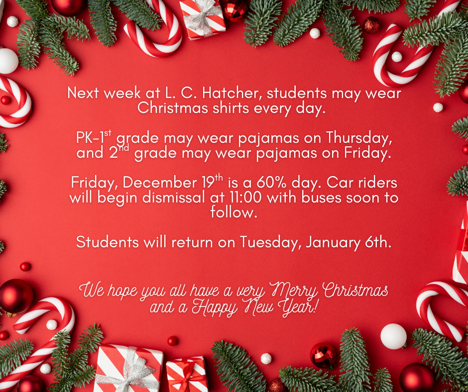 All L. C. Hatcher students will be proficient in all academic areas and thoroughly equipped with skills necessary for personal growth and academic success.